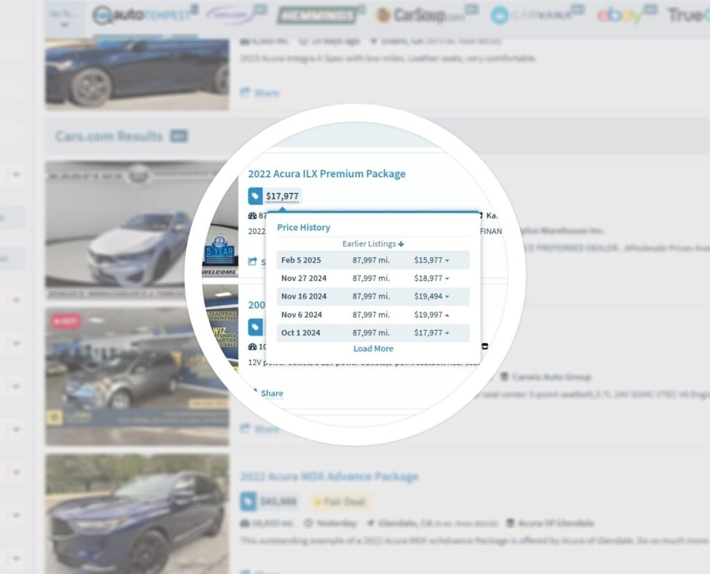 You can now see the price history for listings on AutoTempest. If you see a listing with a dotted underline, click on it to view the detailed price history. You’ll be able to see when the price changed, mileage of the vehicle at the time of each price change, and what the price adjustment was. This new feature provides you with more insight, so you can make a more informed decision in your car searching.