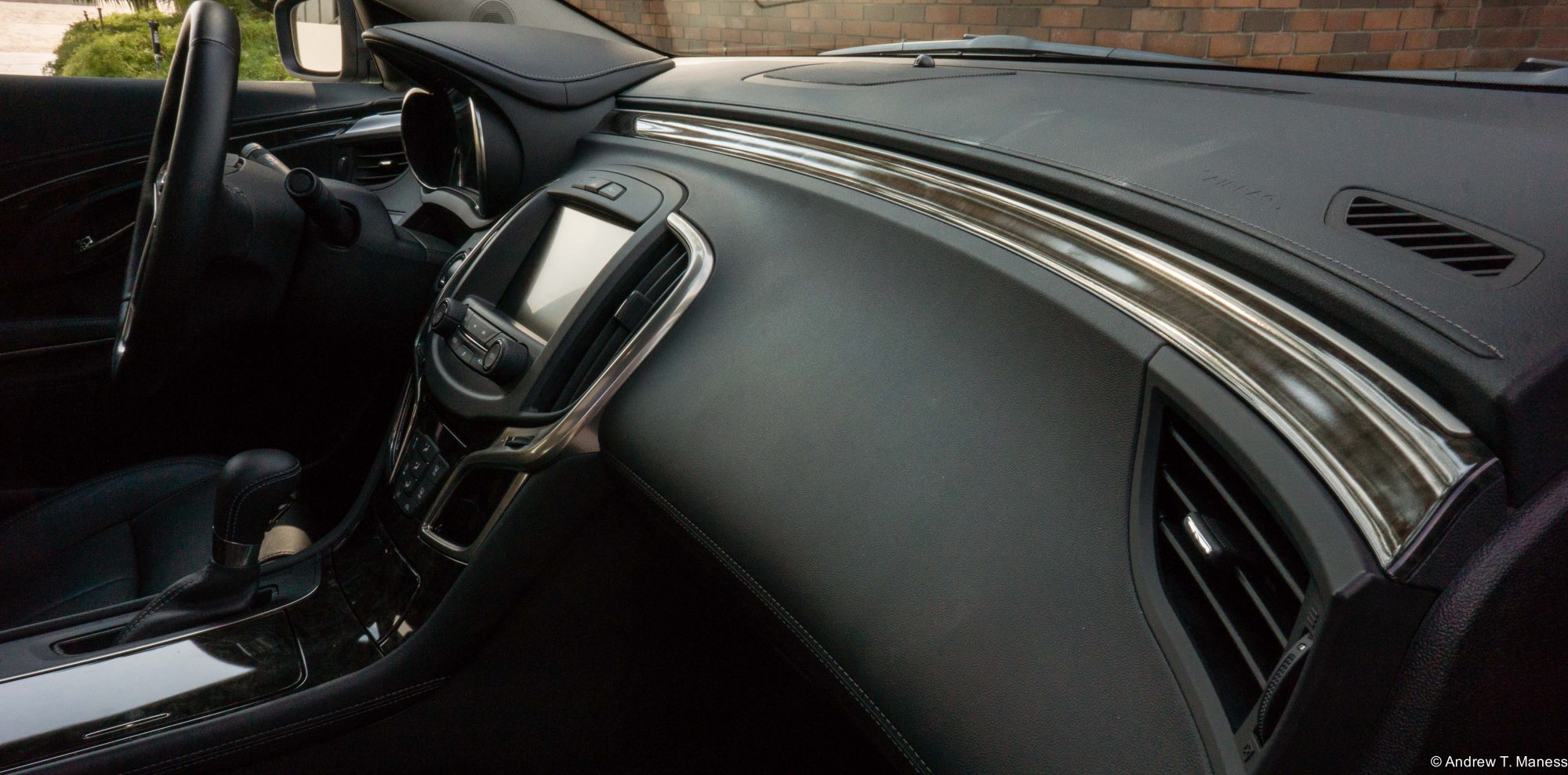 These days I find it easiest to grade a car on what it doesn’t have, rather than what it does. Option sheets have become quite lengthy and frankly, I don’t think anyone would be surprised to find that Buick has a standard backup camera in 2015. My tester was a Premium 2-1SR trim level car and the only package not selected was the $2,495 Ultra Luxury Package. The ULP, as it shall henceforth be known, would have added the following: Sangria semi-aniline perforated leather seating, real Tamo Ash wood trim, leather wrapped center console, door armrests, and heated steering wheel, as well as a microsuede on the headliner, pillar coverings, and vanity mirrors. Would it have been nice to have real wood trim in the nicely sculpted cabin? You bet, but I didn’t lament the exclusion of the ULP for a single moment, and that’s a true testament to the quality of the interior design.