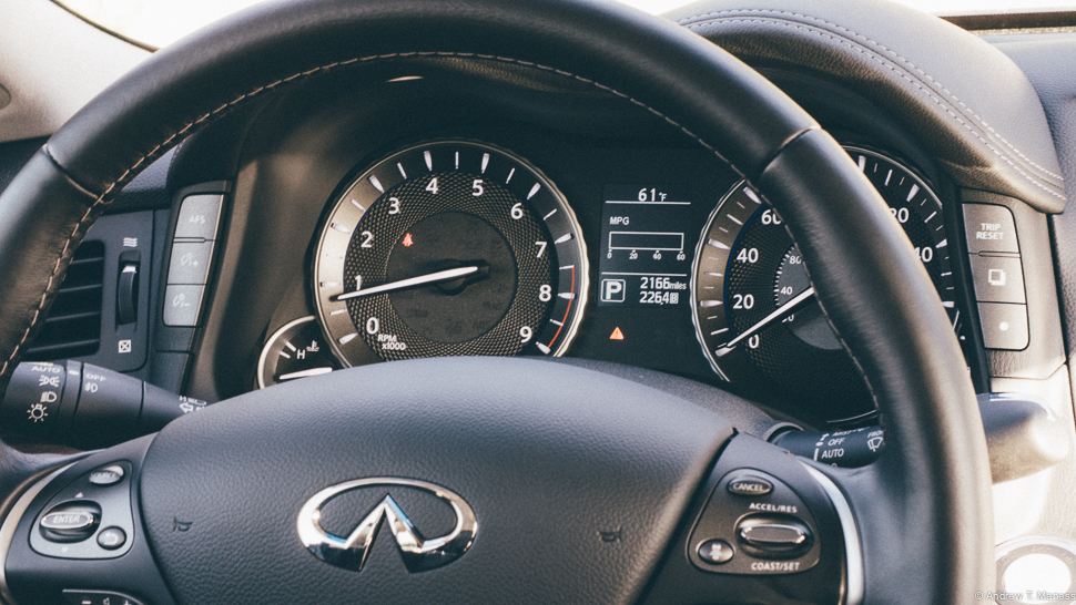 The Japanese White Ash wood trim and 16 speaker BOSE Studio Surround audio system are must haves in the Q70 L. Everyone who rode in the car with me immediately commented on how pretty the wood trim was. Friends who have no inclination towards cars were studying the genuine silver powder accents in the wood and even jaded old me has to admit, that is some pretty trick detailing on Infiniti’s part. The only thing that got people more jazzed up about the car than the trim was the sound system. Regardless of what genre of music you’re listening t0 or source you’re using to play it, the result is crystal clear audio. Whatever processing software BOSE has fitted this car with is damned impressive, even when streaming low quality files from a mobile device. To really put the system to the test, I listened to Metallica’s double album, S&M, which was recorded live with the San Francisco Symphony Orchestra. Listening to Call Of The Ktulu from the comfort of a air conditioned seat, in a car that can basically drive itself thanks to a comprehensive Technology Package ($3,300): that is my idea of luxury.
