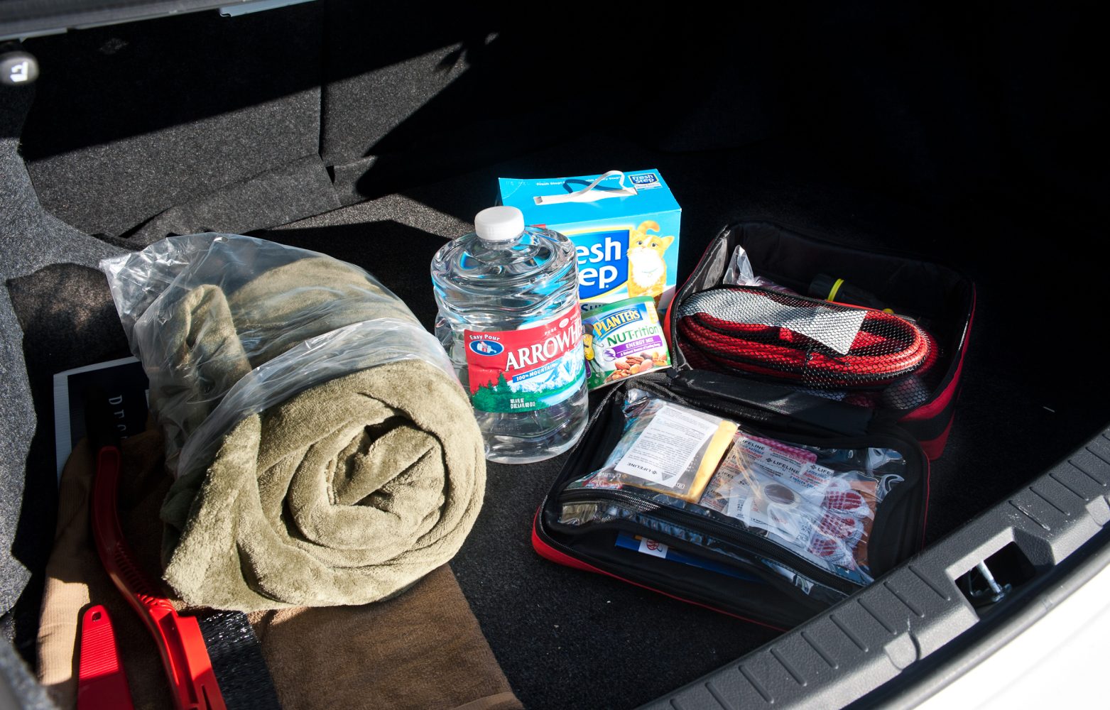 I have two kids, so I generally keep a bag full of wipes, paper towels, bandages, and other necessities in the trunk. In the winter, I add a blanket, an ice scraper, an extra jacket, and other supplies like a solar power converter to charge my phone.