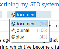 So, that’s the meat of the system. If you read that Secret Weapon page, you’ll notice the main difference is that I use separate notebooks for the priority levels, whereas they use tags. I think notebooks are an improvement, because everything needs to have a priority, and any given task can only have one priority at a time – which is exactly how notebooks work. So to move something from Next to Now, for instance, I just have to drag it over. Using tags, you would have to both add the Now tag and delete the Next tag. Not a big deal, but I feel this way is easier. I’ve also got a handful of tags separated into various categories. I may cover those in a later post, but the main thing to remember is not to make too many tags. You can always search by keywords, so you only want to have a few tags that you’ll actually remember to use. Get too many, and you’ll end up back in the millions of browser bookmarks situation, categorizing everything methodically, but never actually using it. Finally, you’ll notice a bunch of funny symbols before most of my notebooks and tags. Those are used both for sorting, and to group similar tags together so I can grab the right one quickly using autocomplete.