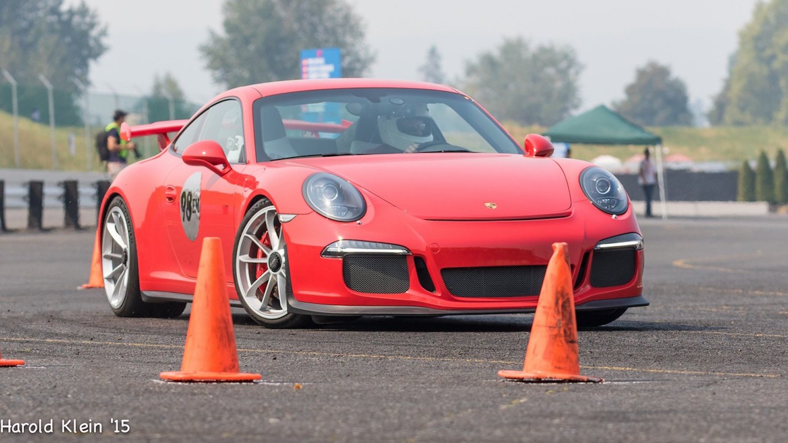 While others are racing you will be expected to work at one of the corners to replace cones. When cones are struck you will need to replace the cones back into place. One worker will have a radio and red flag so they can call in penalties to the timing desk and also to stop a driver if there is an incident on track. Watch for cones that have been struck and only replace them when it is safe to do so. If a cone is still upright and touching the chalk line box it is not a penalty, but still should be replaced in the center of its box. Keep the red flag unfurled and ready to fly should there be an incident. Sitting, picture taking, and cell phone use is not allowed. Never turn your back on a car. Be respectful and do not take any pictures or video any on course incident.