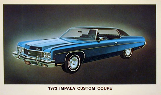 The ’73 Impala gave buyers a variety of choices, not matter what part of the country they lived in as all motors were available nationwide. The aforementioned 350 cu-in V8 was standard across all models, and a four barrel carb version of that motor, as well as a 245 hp 454 Turbo Jet V8, could be selected for any Impala. The Custom Coupe, Sport Sedan, and “clamshell” station wagon could also be optioned with the 165hp 400 cu-in Turbo Fire V8 that was standard in the top of the line Caprice Classic series. One might think that the 454 Turbo Jet would have been the most popular motor with buyers as it produced the most power to move the 4,000 + pound car, but it was a shell of it’s former 365 hp self, a fact that buyers quickly figured out. Rather than pony up for the extra power, the majority of Impala buyers wisely saved their dough for satiating the thirst of the car. We’re talking 9 mpg highway, with a tailwind, and everything running in tip top shape. Still, when you take into account that there are still vehicles produced today that return the same kind of fuel economy, it doesn’t seem so bad.